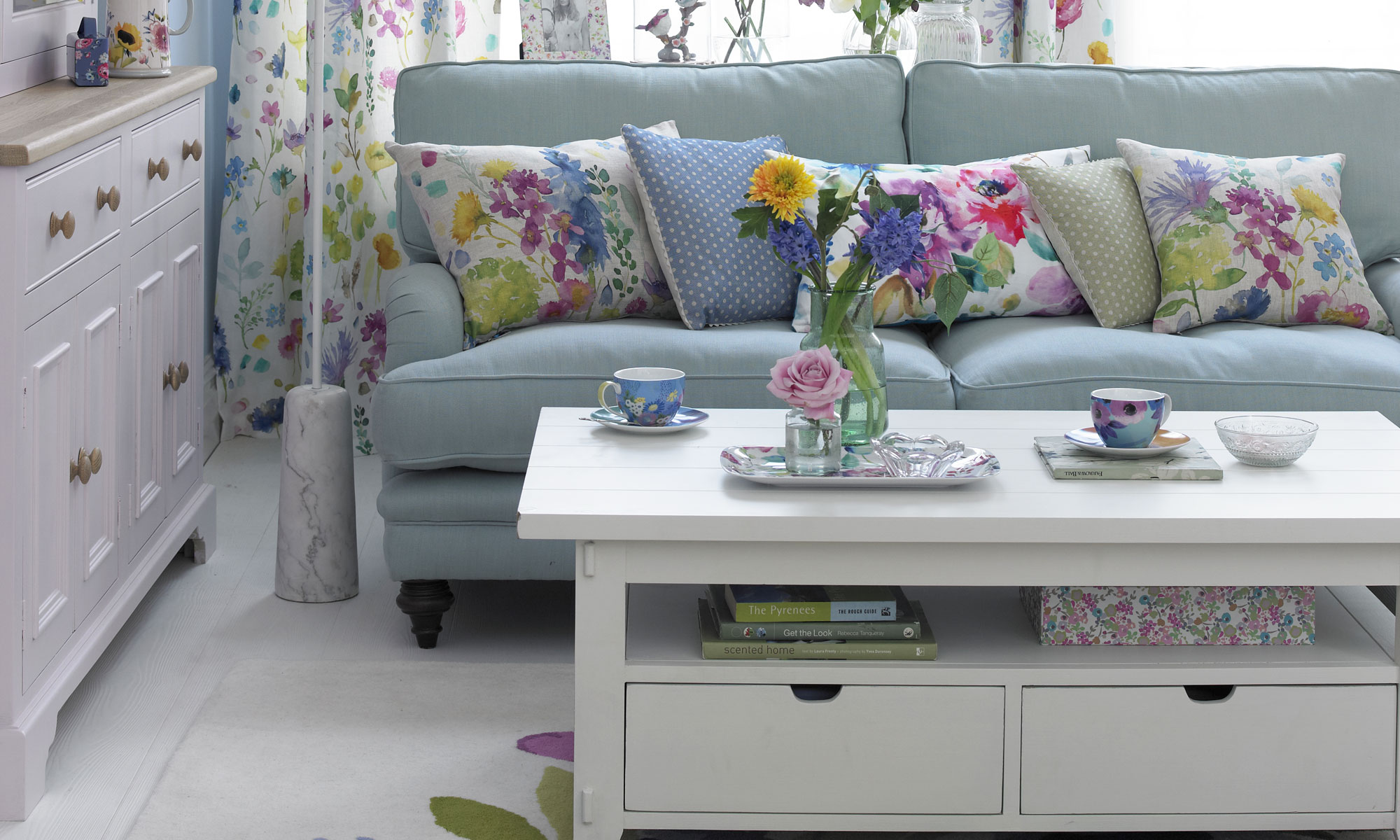 Remember, though, that a duck egg living room scheme does not have to feature duck egg wall paint. Consider wallpaper designs too – patterns or plains. Floral and leaf motif designs are particularly suited to duck egg blues. Or leave walls neutral and save those duck egg shades for upholstery, flooring and window treatments or a selection of carefully chosen accessories.