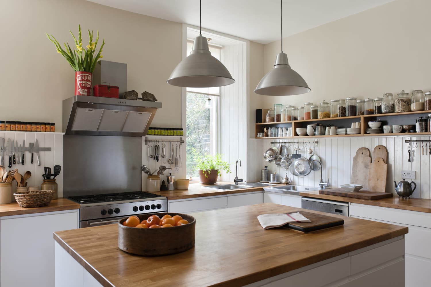 Not to mention, when things get a little smoky (couldn’t be me burning my toast), you’ll want to have a portal to the outdoors. Ambs recommends skylights to amp up the natural light — but steer away from light fixtures with clear glass shades, which tend to look more harsh and greasy than sleek and bright. “The best kitchen is light, airy, and has good energy,” Sachs Wong says.