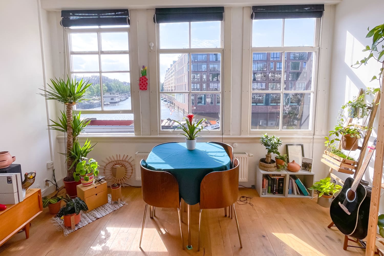 Tell us a little (or a lot) about your home and the people who live there: I am a copywriter, and my boyfriend, Pieter, is a photographer. He likes to hang photos on the walls as much as I enjoy showcasing my book collection; that’s why we agreed to stick to minimalism in our home. Our home is in the city center of Amsterdam, and it’s a roughly 45-square-meter one-bedroom apartment with a beautiful canal view.