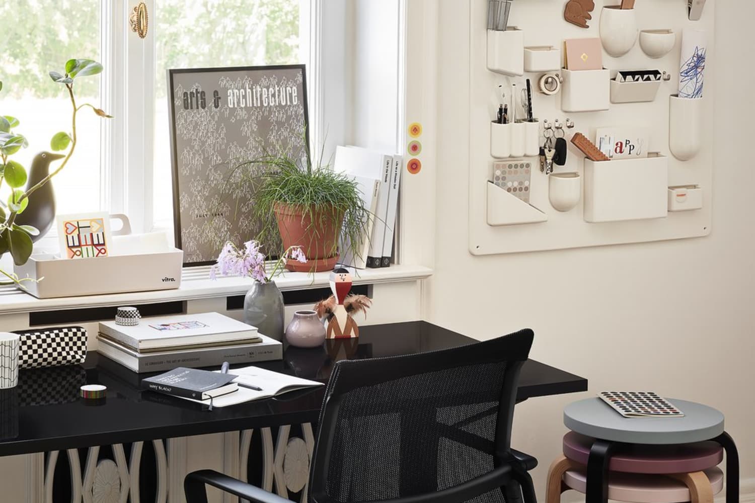 Next up, some show-stopping storage: Our jaws are still on the floor over this sculptural Vitra Uten.Silo wall organizer, which can corral your office odds and ends with museum-worthy flair. Ditto for the bright red Icon Power Hub, a multi-port charging cube that can charge six devices simultaneously — and do it three times faster than an average plug.