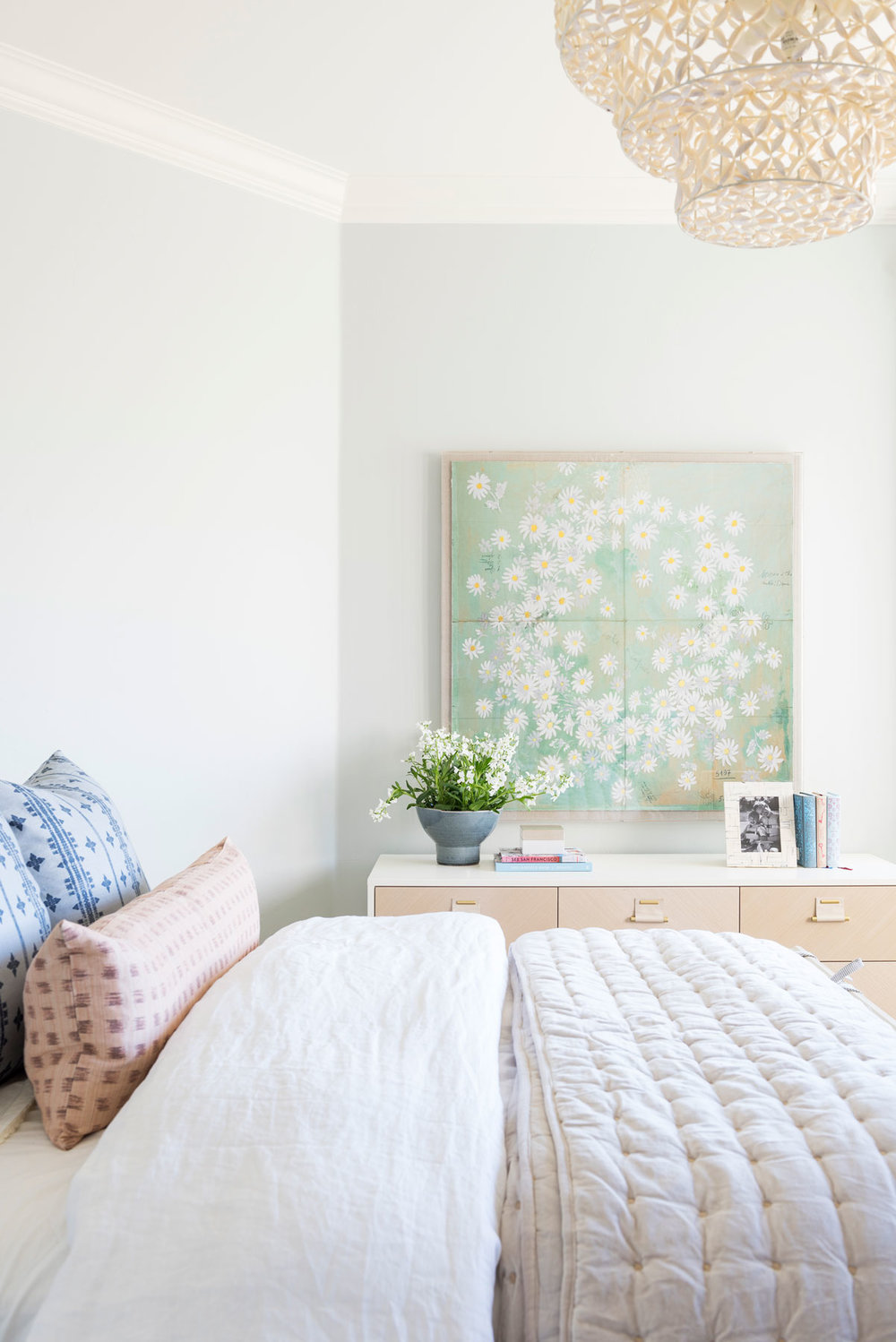 The truth is, you probably don’t need as much as you think you do. In our opinion, a bed and a dresser are the only necessities; plus, they both bring styling opportunities! This can be easier said than done when you are low on square footage, but overcrowding the room with furniture will only make space feel smaller.