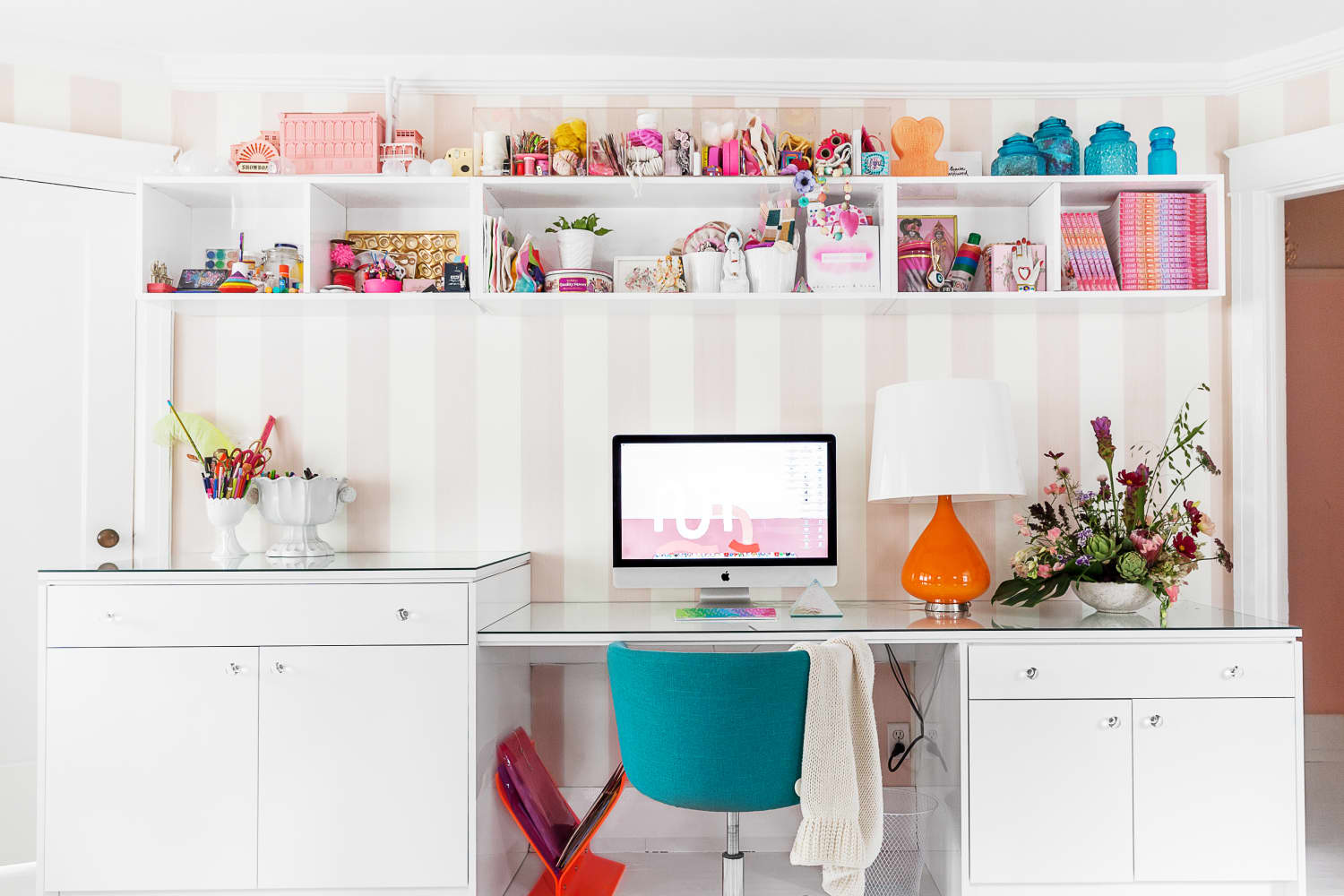 Like with your lockers back in school, it’s tempting to deck out your home office space with things that scream, “You!” But, according to Caroline Solomon, a home organizing expert based in NYC, those personal items can cause your mind to drift and negatively affect your productivity.