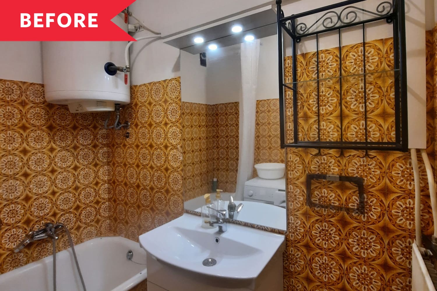 Before and After: A Dirty, Stained Bathroom Gets a Colorful $78 Revamp