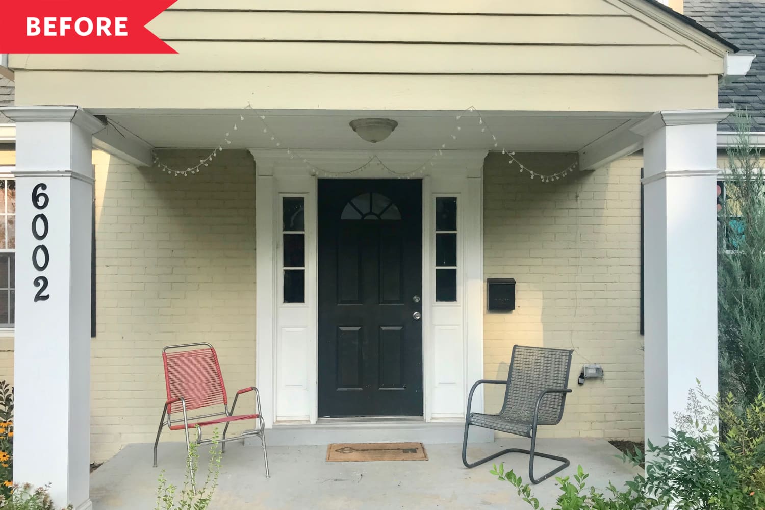 To really make the entire entry look fresh and new Lara painted the cement porch — and that’s the part she’s most proud of. “It doesn’t look like much, but it was my first time patching cement and it has prolonged the life of the slab by years (hopefully),” she says. Lara also built new, narrower porch columns and painted them a clean, bright white. The new columns are a subtle change, but they make the whole porch look wider and more welcoming.