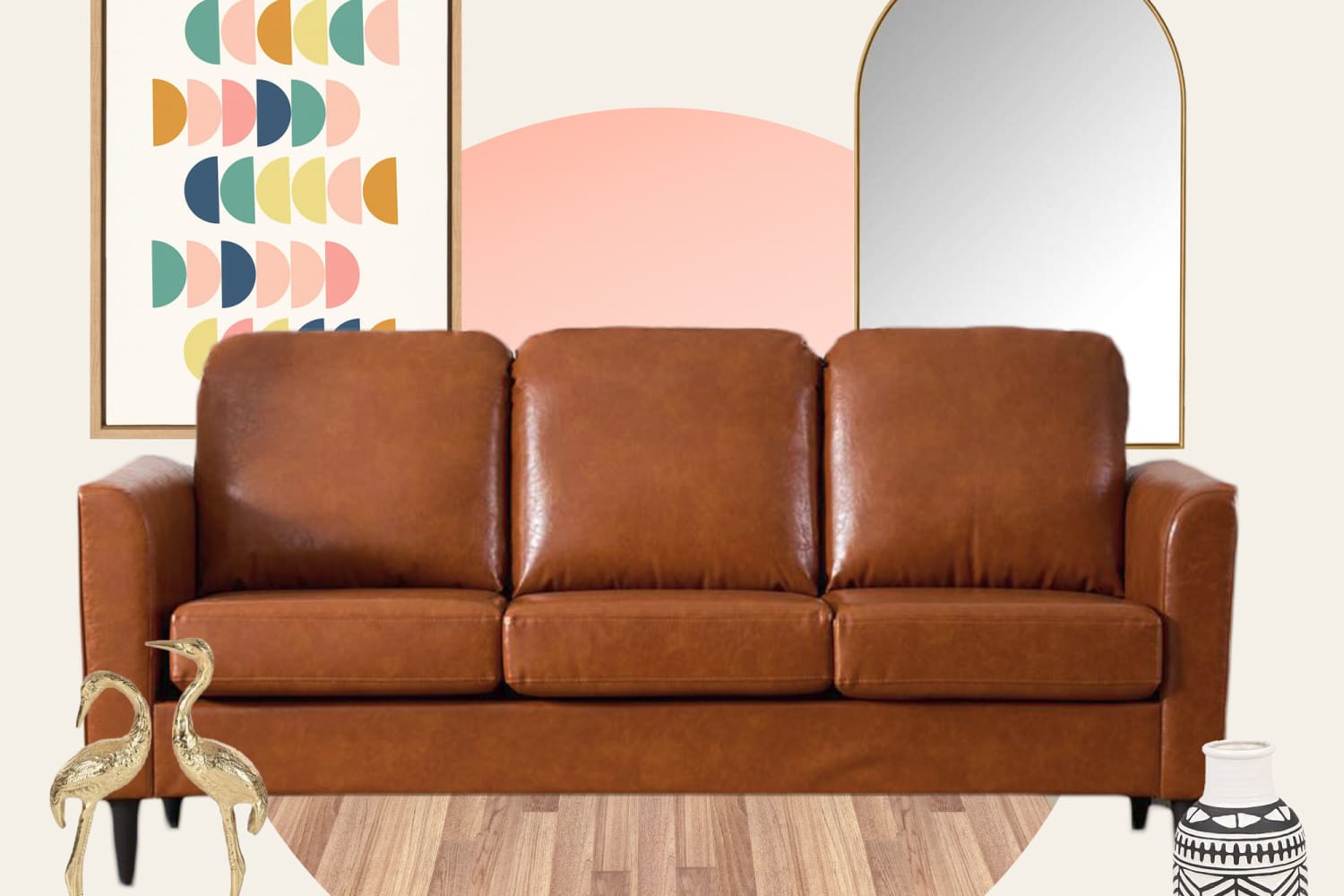 We started with a classic couch and coffee table. The Brookside Clara 3-seater sofa has a traditional look, with buttery faux-leather upholstery and curved arms for a modern update. And at 72 inches, it’s roomy but still slim enough for small spaces. An elegant wood coffee table can suit midcentury, boho, and even farmhouse decors, with spacious drawers that keep clutter at bay. Both pieces — along with all of our designers’ finds — are from The Home Depot, whose online store is packed with on-trend pieces at on-point prices. From anchor pieces to finishing touches, there’s something for every design aesthetic. Check out the different looks our designers created.