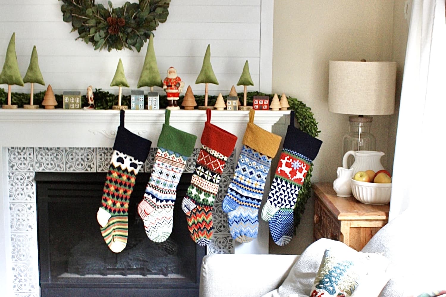 With a background in fine art and a flair for colors and patterns, Kirsten Yanasak has a knack for finding pieces that sparkle all year long. This holiday season, she wanted to use her living room’s stunning tiled fireplace as a backdrop for a warm, relaxed pre-holiday gathering with her in-laws. An ivory plaid wool and cashmere throw increases holiday spirit and snuggle potential, while an array of rustic velvet trees and adorable wooden houses put a playful, farmhouse spin on holiday decor.