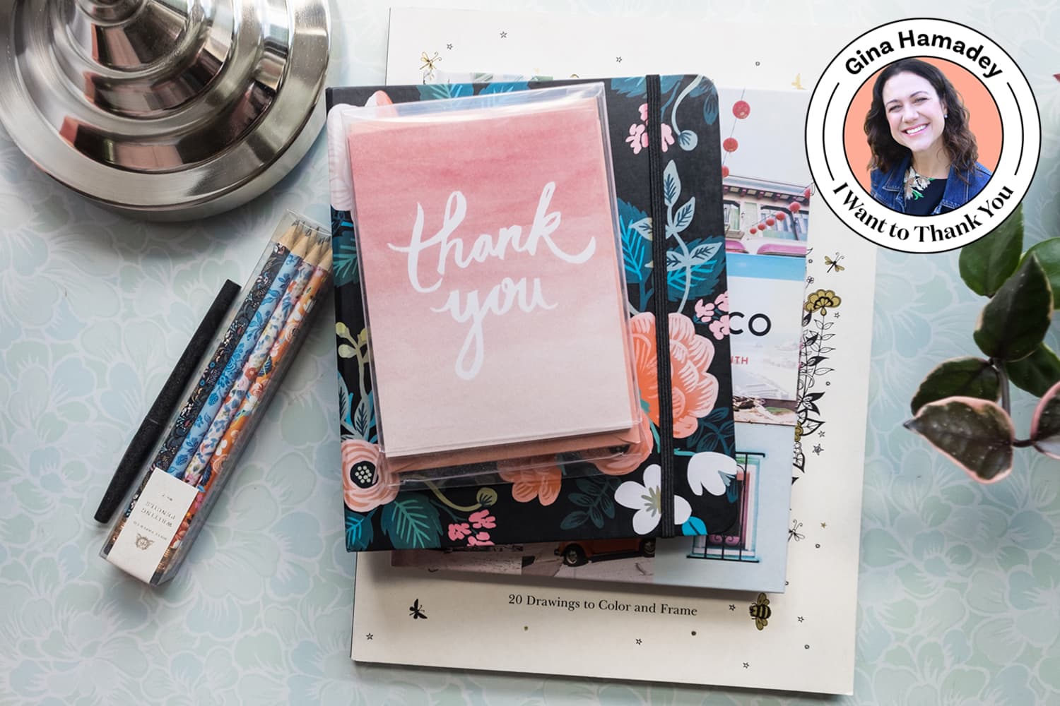 Gina Hamadey, author of “I Want to Thank You,” a book about her year of writing a thank-you note every day, knows this from personal experience. “Expressing gratitude regularly retrains your brain to focus on what’s good in your life instead of what’s missing,” she tells Apartment Therapy. “Even on days when there is no time for yoga or journaling or creative writing or any other type of self-care because of all the tasks I have to do for my work and for my two small boys, gratitude helps me focus on what is good and what is working, instead of all the things I didn’t have time to do that day.”