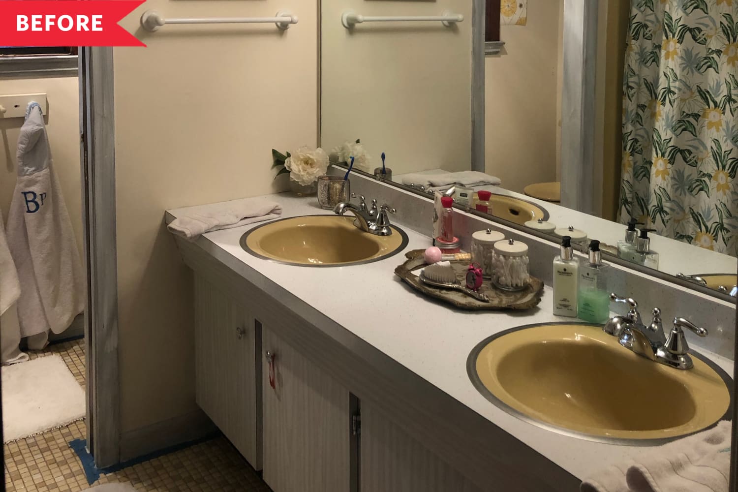 Bathrooms have a knack for getting away from their users. At first, a black spot of dirty grout doesn’t seem so bad, and neither does awkwardly placed shower rods or old-fashioned vanities. Even the most unfortunate colors have a way of drifting into the background after a while, especially when the focus can stay on skincare and tooth-brushing routines. And then, once you realize one problem, it’s like finally being able to acknowledge them all.