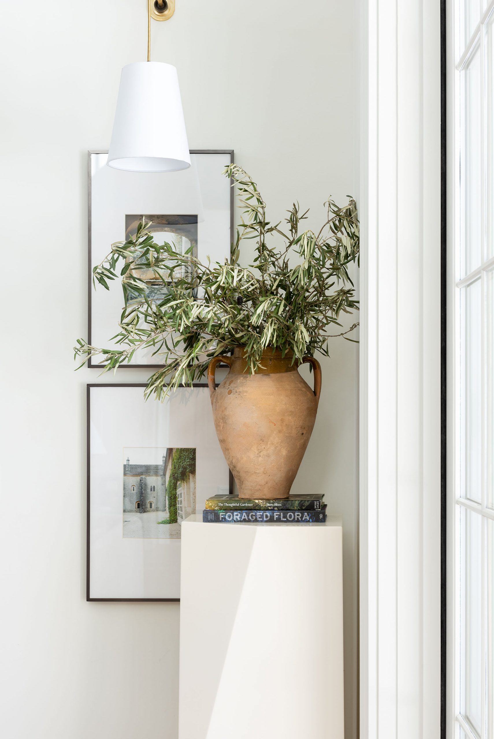 Pedestals can be a great way to make special styling elements shine since they give whatever is placed on top of its own moment and spotlight. Style your favorite piece of pottery, display your favorite books, or hang an artwork piece you want to highlight above to make your home feel like its own curated gallery.
