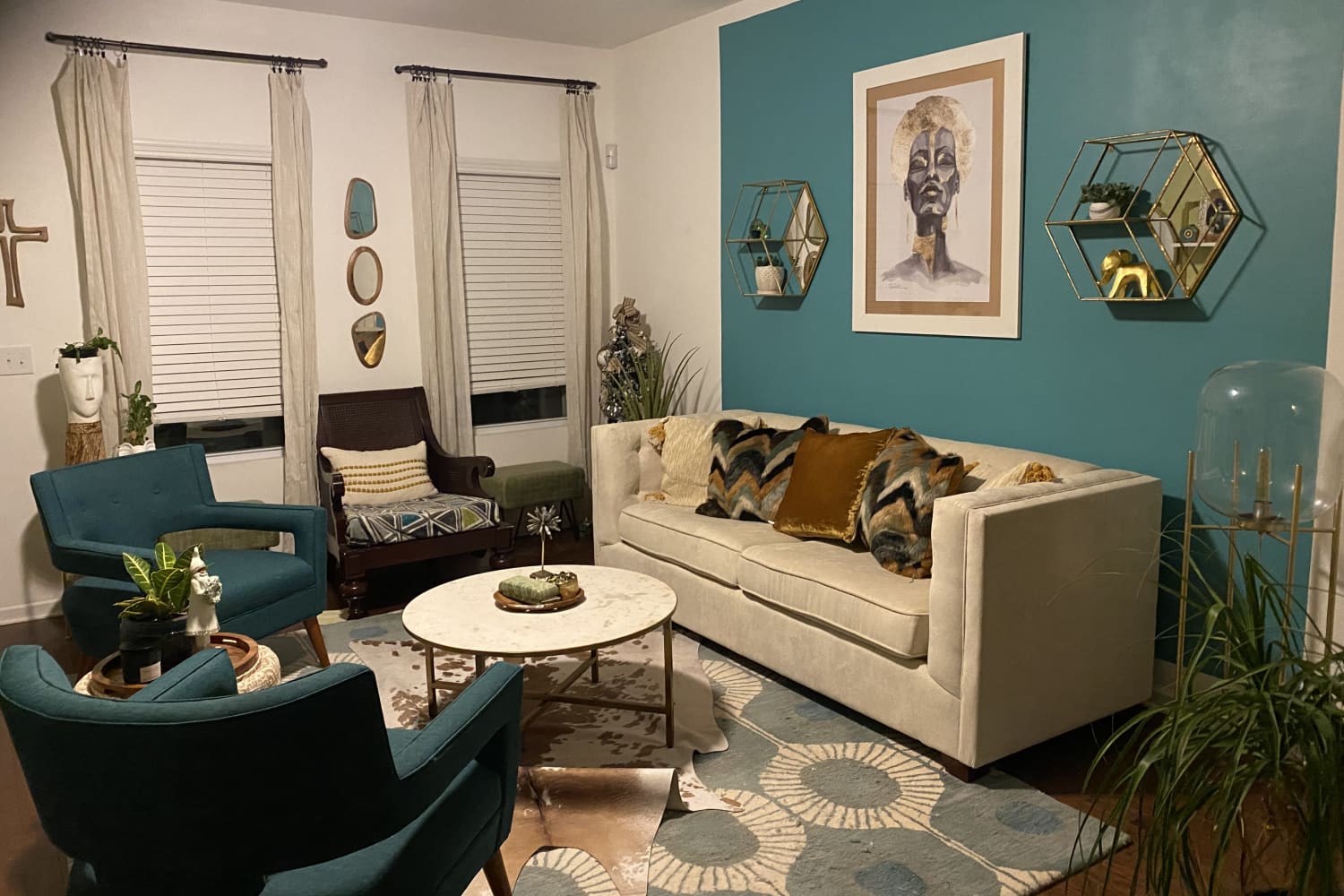 Describe your home’s style in 5 words or less: Mid-century, Afrocentric, bohemianesque