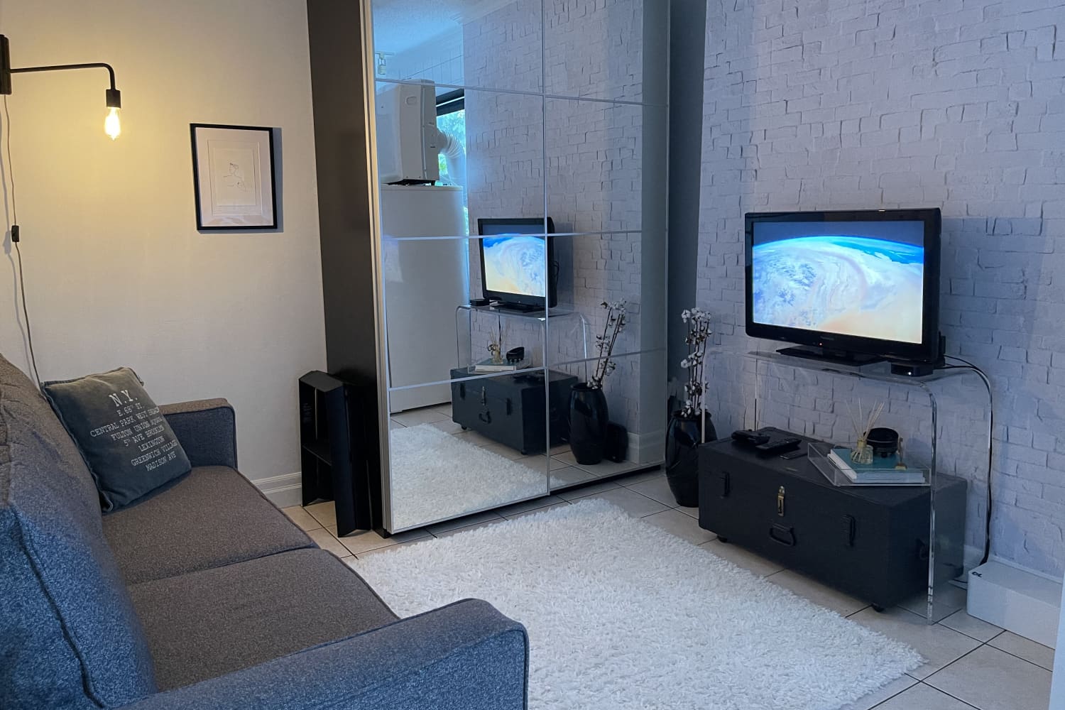 I really do feel like my apartment represents my personality and the man I am growing into. I have never felt more at home in a place. I would say my wardrobe matches everything, and the textures definitely give a cozy vibe. Everything hides away in my giant wardrobe, so cleaning takes minutes.