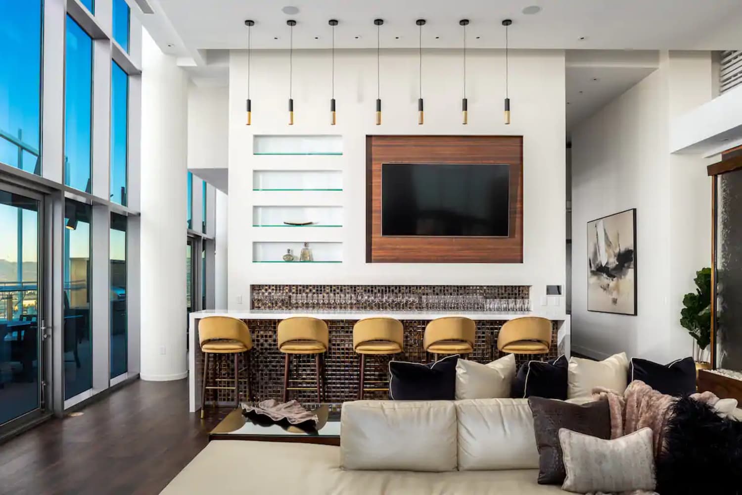 Rounding out the top five is a sky-high penthouse with 360-degree views of the Las Vegas strip that will cost you nearly $30,000 for three nights. Located on the 59th floor, you’ll score access to valet parking and a rooftop pool as well as a DJ booth, outdoor movie screen, elevated hot tub and outdoor kitchen, making this the ultimate Vegas party pad on the block.