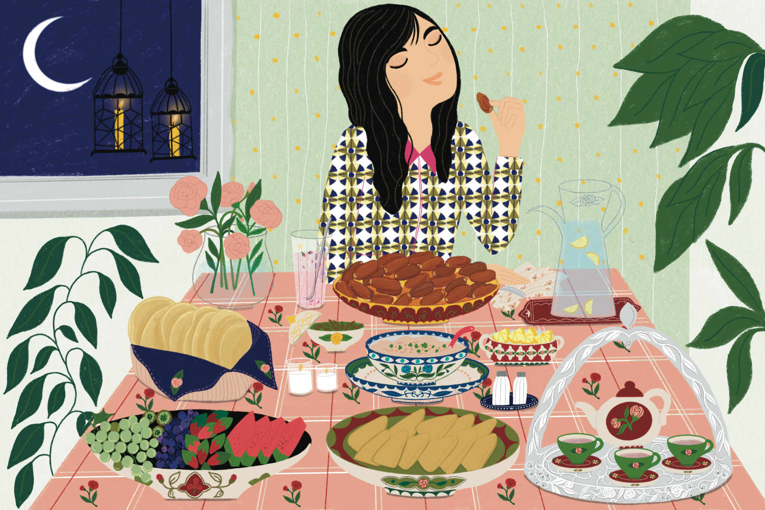 We love our tea and coffee after a meal, but the caffeinated sort can be so dehydrating and a huge disruption to our sleep cycle. One way to substitute for those is by consuming non-caffeinated herbal teas. They’re a fantastic way to wind down, digest your food, and get that much-needed restful sleep throughout the month, as fasting can be quite taxing on the body. Plus, there’s a huge variety out there of delicious and flavorful herbal teas. These caffeine-free recommendations aid in digestion and have a calming effect on the body: lemon balm, chamomile, and Egyptian licorice, which is warming and has a little spice added to it.