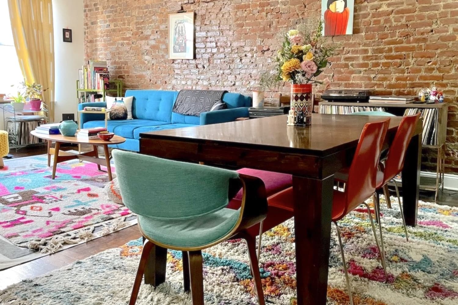 Describe your home’s style in 5 words or less: A vibrant, playful, brick-lined abode