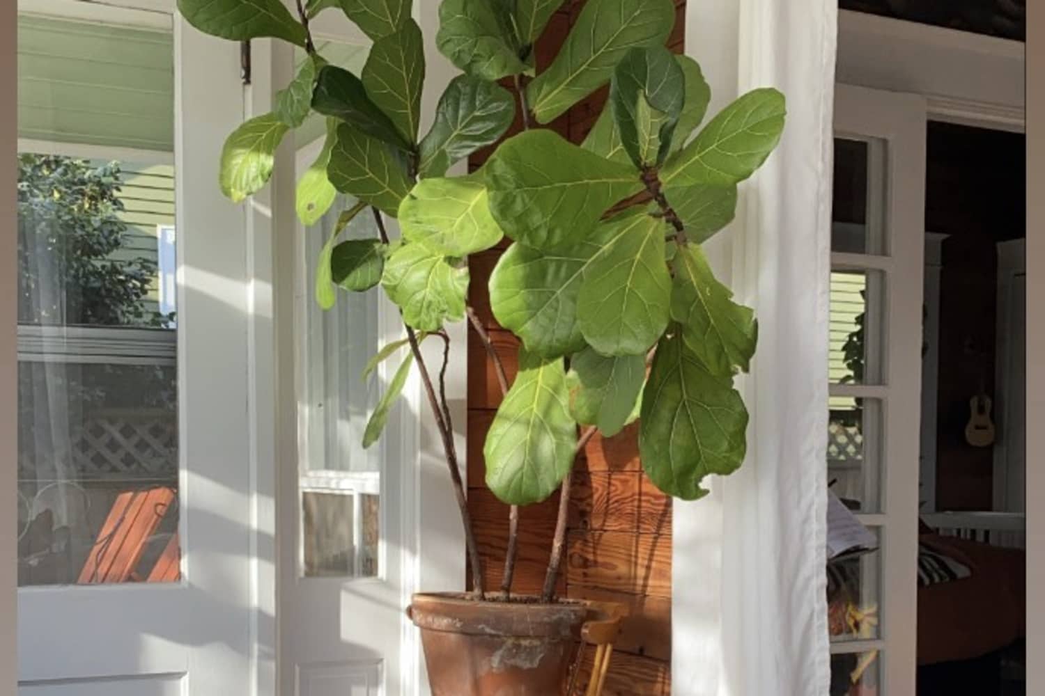 Tell us a little (or a lot) about your home and the people who live there: My husband Danny and I moved into our home a year and a half ago. It was built in 1914 and was stripped down to its historical wood shiplapping throughout the home. The large windows flood the home with light and the archways that divide each room allow for an airy, open interior. Danny is a chef and I am an artist, and we share the front room that has glass doors as the access to our primary bedroom and a view of a large magnolia tree out our window. Our newborn has the second bedroom, and our cat and dog share the front mudroom where they have their own daybed to enjoy watching squirrels in our mature fig tree.