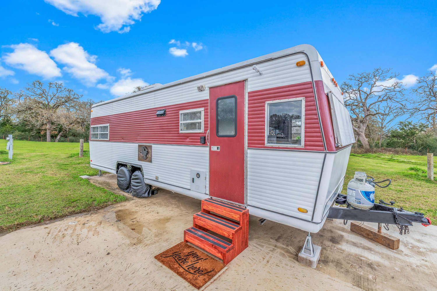 Tell us a little (or a lot) about your home and the people who live there: I’ve been passionate about tiny homes and particularly vintage campers since I was in college where I had a Pinterest board full of old Shastas and canned ham trailers. While I could likely never live in such a small space full time, I adore them and prefer to vacation and escape to unique small spaces. I’m also very interested in real estate and love how financially accessible travel trailers could be as short term rentals. After looking for years, I saw a partially renovated 1984 Holiday Rambler travel trailer on Facebook Marketplace one day and knew it could make an amazing “game day” rental for Texas A&M University and other events. I had no experience renovating a camper and had only stayed in one once, but I’ve found I can figure most things out with enough Googling. The camper had already been gutted, sealed, and had the walls rebuilt, which spared me from the worst inevitable camper issue — leaks and water damage.