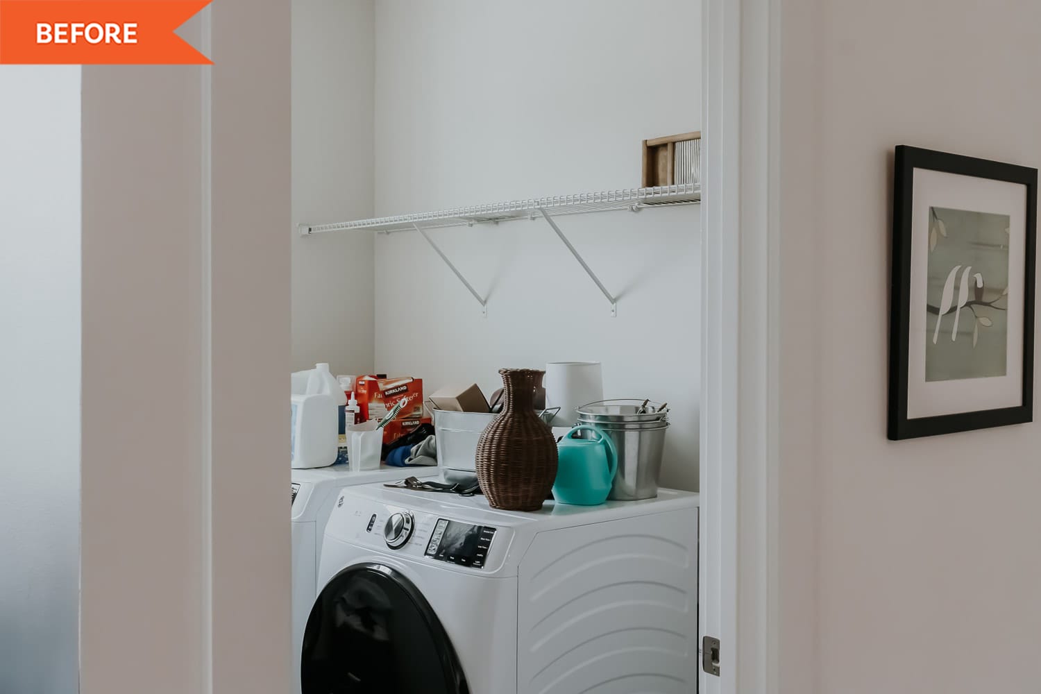 B&A: A Laundry Room with Wire Shelving Gets a Cozy, Functional $500 Upgrade