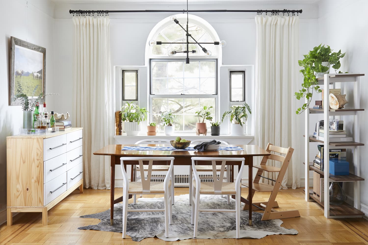 Being a mom influenced all the choices in our home the most, though it might not seem that way on the surface. I chose durable surfaces that will get better as they age, like our leather sofa and marble coffee table. Almost everything does double duty for storage. The credenza under the TV holds board games, Play Doh and art supplies, as well as our napkins and placemats. The sideboard in the dining area is actually a dresser that holds all of Rachel’s clothes.