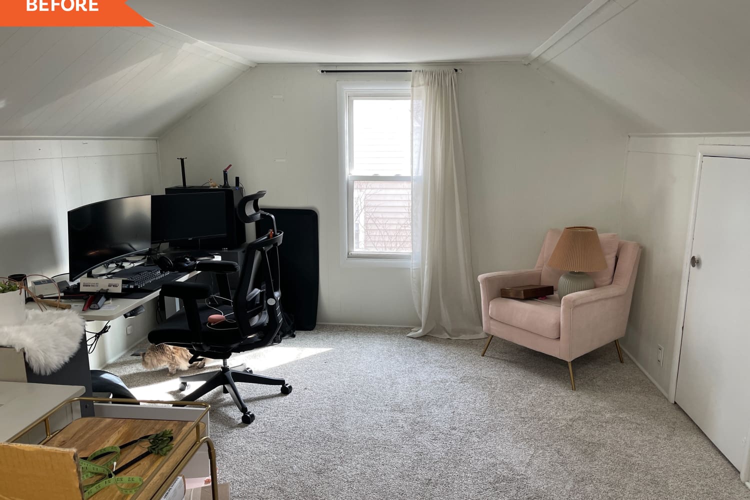 B&A: A Plain Attic Space Becomes a Cute and Cozy Lounge for Movie Nights
