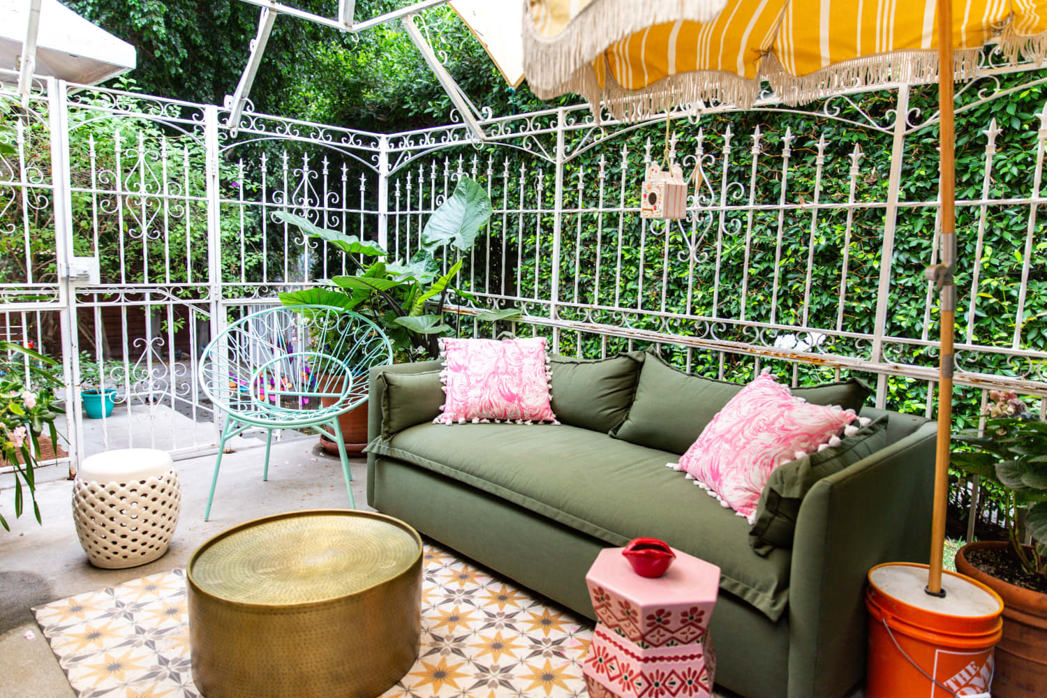 “Outdoor rugs tend to get blown around in the wind, which can lead to them getting creased or warped. You can add strips of peel and stick velcro to the underside of the rug to hold it in place,” says McBride. “The velcro is removable in the future if you stop using the rug. If your outdoor rug gets dirty, the easiest way to clean it is with a pressure washer!” (Still shopping for an outdoor rug? These are on sale this weekend.)
