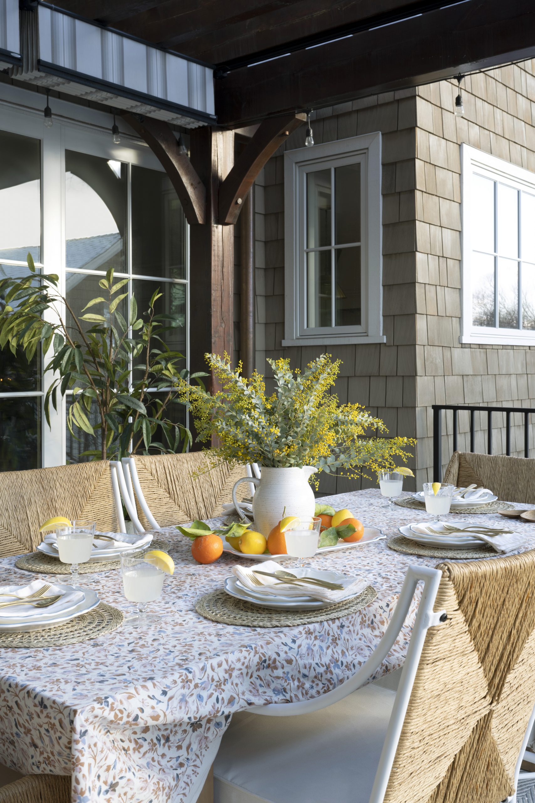 Not all patio decor must be sentenced to stay outside. In fact, we love putting good use to indoor items — the ones tucked in kitchen cabinets or up on the shelves — for outdoor enjoyment. Pitchers, placemats, bowls, carafes, platters… they can all be repurposed to serve food and drinks, or hold fresh-cut stems on the table. Don’t forget a basic or statement-making tablecloth, too!