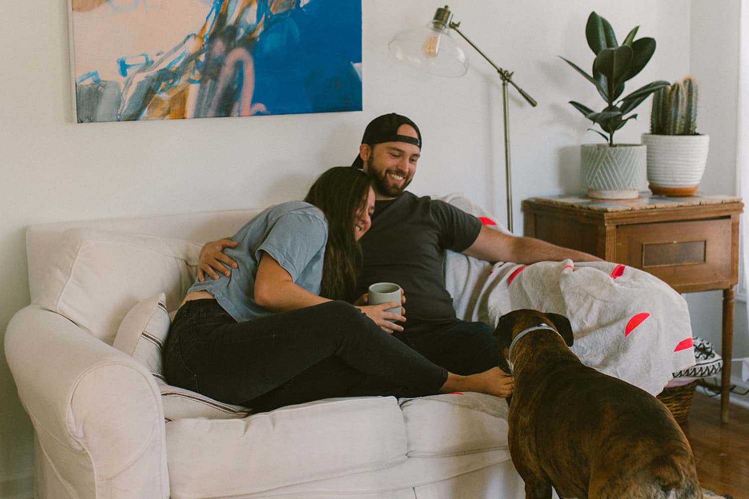 What is your favorite room and why? Probably our living room. We have our Katie Pumphrey painting as the focal point and an incredible vintage Beni Mguild rug. All of the furniture is thrifted or vintage — something I’m very proud of. You can also see the hallway arches from this room and we 100 percent bought the house for the arches.