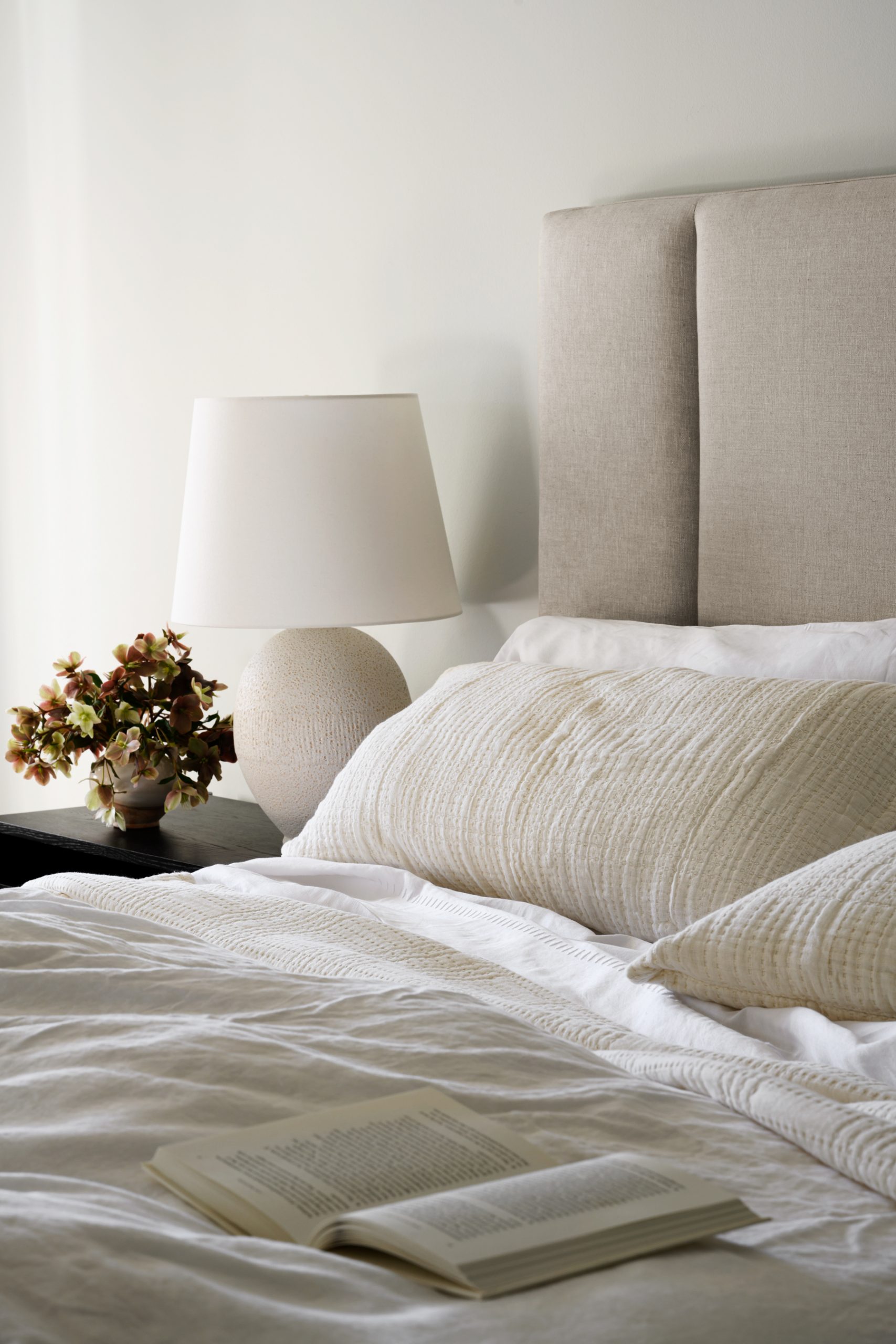 Rather than layering in heavy fabrics like wool, incorporate light, breathable fabrics into the space. Materials like cotton, linen, and linen blends are airy and soft, making them a welcome, lightweight addition even in toasty summer months.