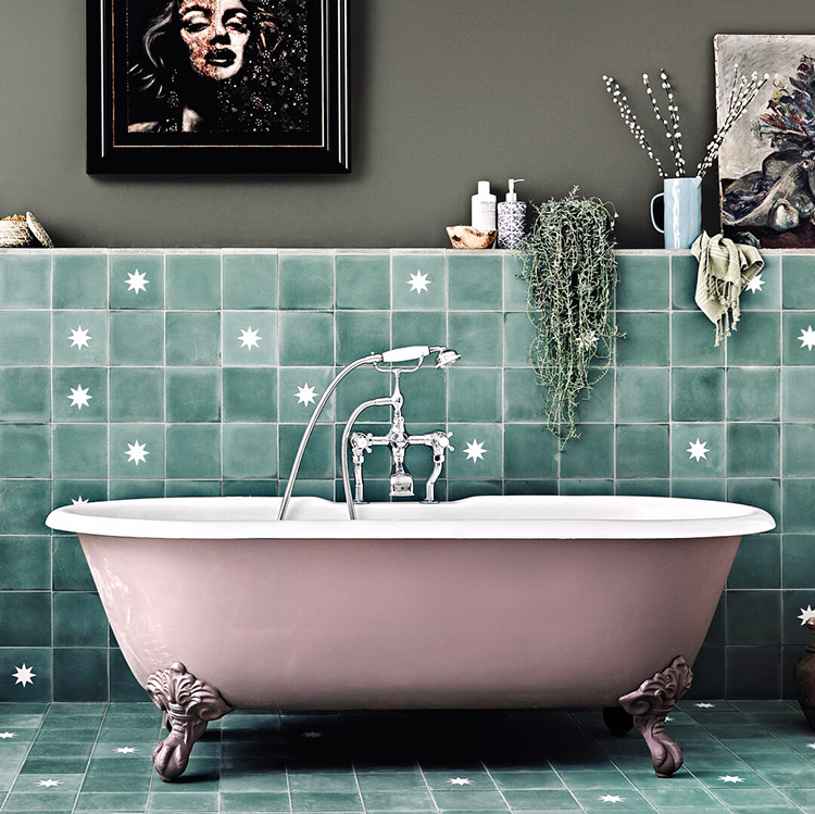 - Feel a strong block of colour is too much for your space? Consider using a patterned tile – Bert and May Green Alalpardo Porcelain tiles (pictured above) can be used to create a striped or diamond design. The moss green creates an impact without feeling overpowering.