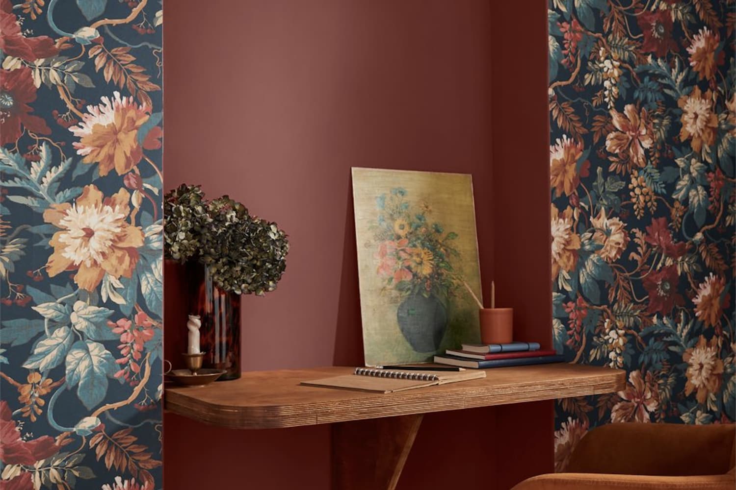 British wallpaper giant Graham & Brown recognizes the appeal of home design rooted in comforting and timeless yet creative trends. It shows in their recently announced 2023 design and color of the year: Florenzia Dusk and Alizarin, respectively.