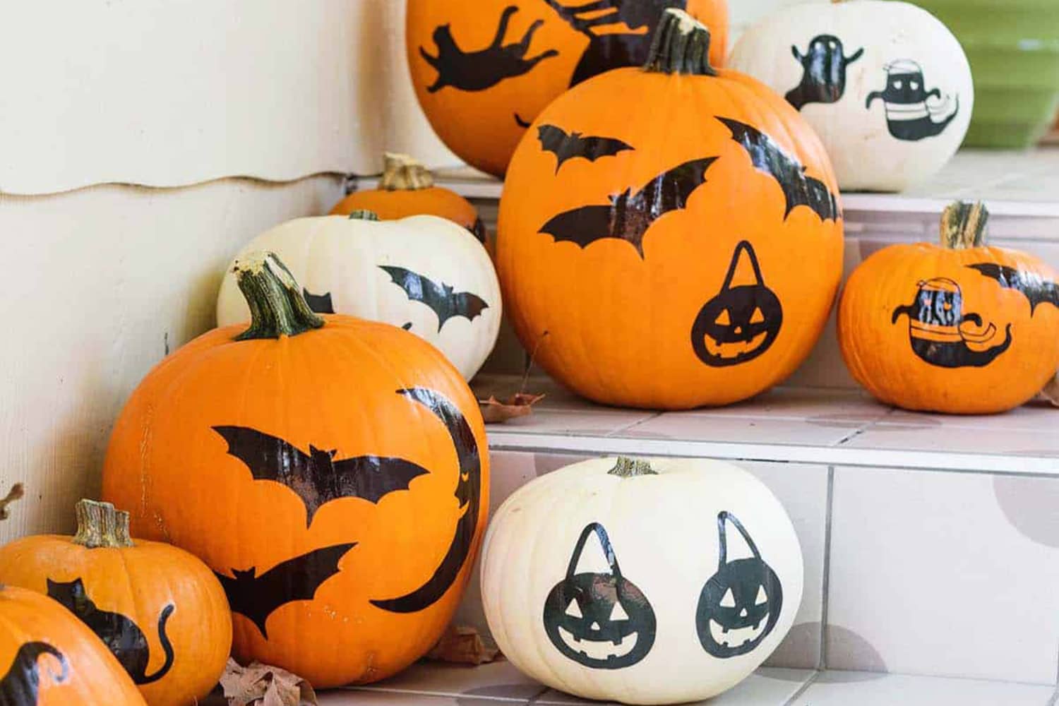 No-carve pumpkins are a great way to make sure your selection lasts all season, and these ones from A Beautiful Mess should get your imagination going. You can paint, dip dye, or tattoo — yes, tattoo! — your pumpkin collection by following the guide. Emma created her own temporary tattoos for her porch lineup, and finds tattoo paper easier to contour to pumpkin ridges than stickers.