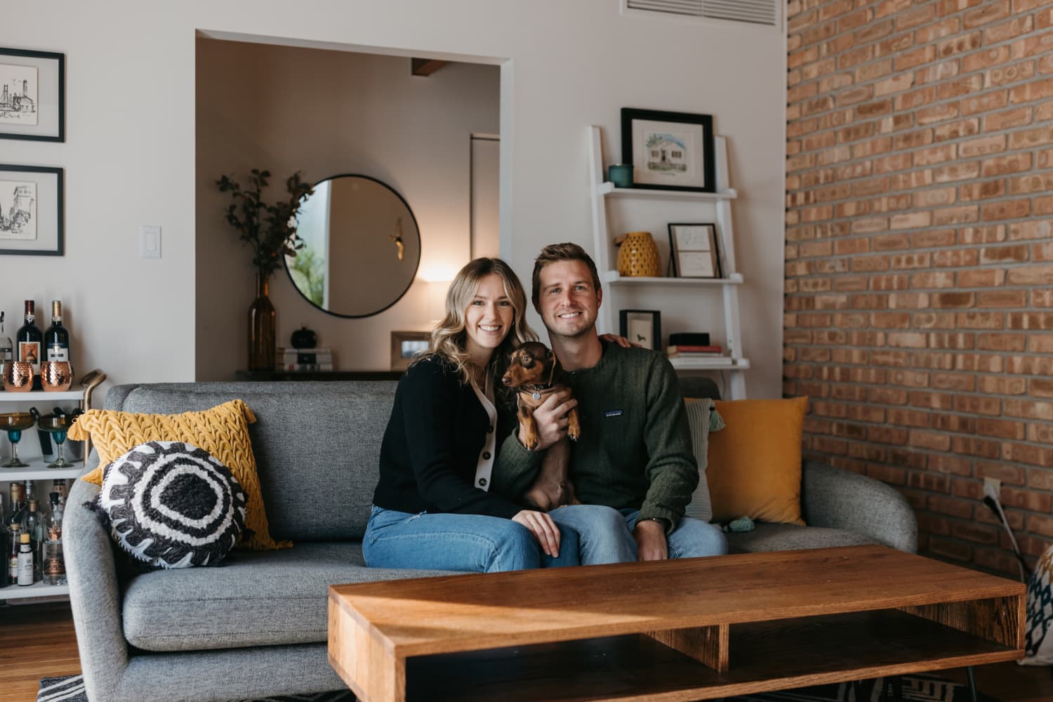 What is your favorite room and why? The living room. It’s south facing, so it gets the most incredible light year-round. It has an original brick accent wall, original wood floors (that we found under carpeting), a gorgeous tall, narrow window, and it’s super cozy. I spend a lot of time working in here, and Louie finds the sunny spots for his naps (and to bark at passers-by).