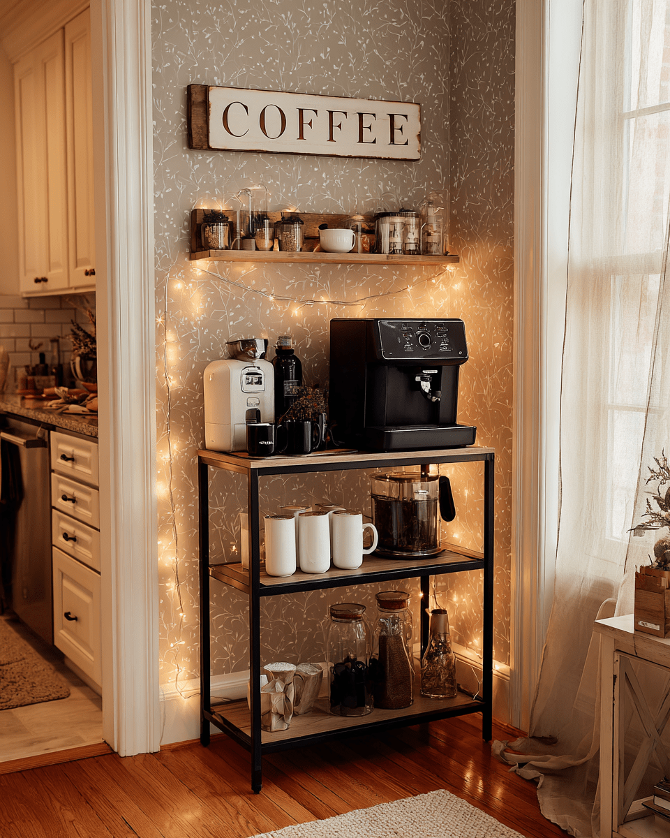 Finally, think about how you use the space. Because Cafe Core isn’t just about looks, it’s about the ritual of drinking and enjoying coffee. Maybe you start your mornings there with a fresh brew and five quiet minutes before the chaos of the day begins. Or maybe it becomes your wind-down corner with a book and a glass of wine in the evening.