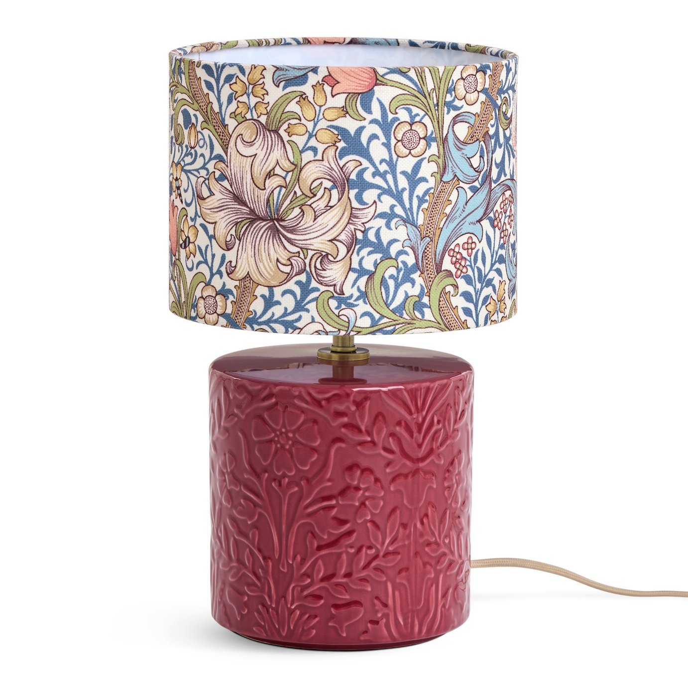The Habitat x Morris & Co Golden Lilly Ceramic Lamp is the perfect cosy transition into autumn. Its berry-red base is cosy and inviting, while the Golden Lily printed shade is a beautiful mix of autumnal greens and red, as well as summery blues and yellows.