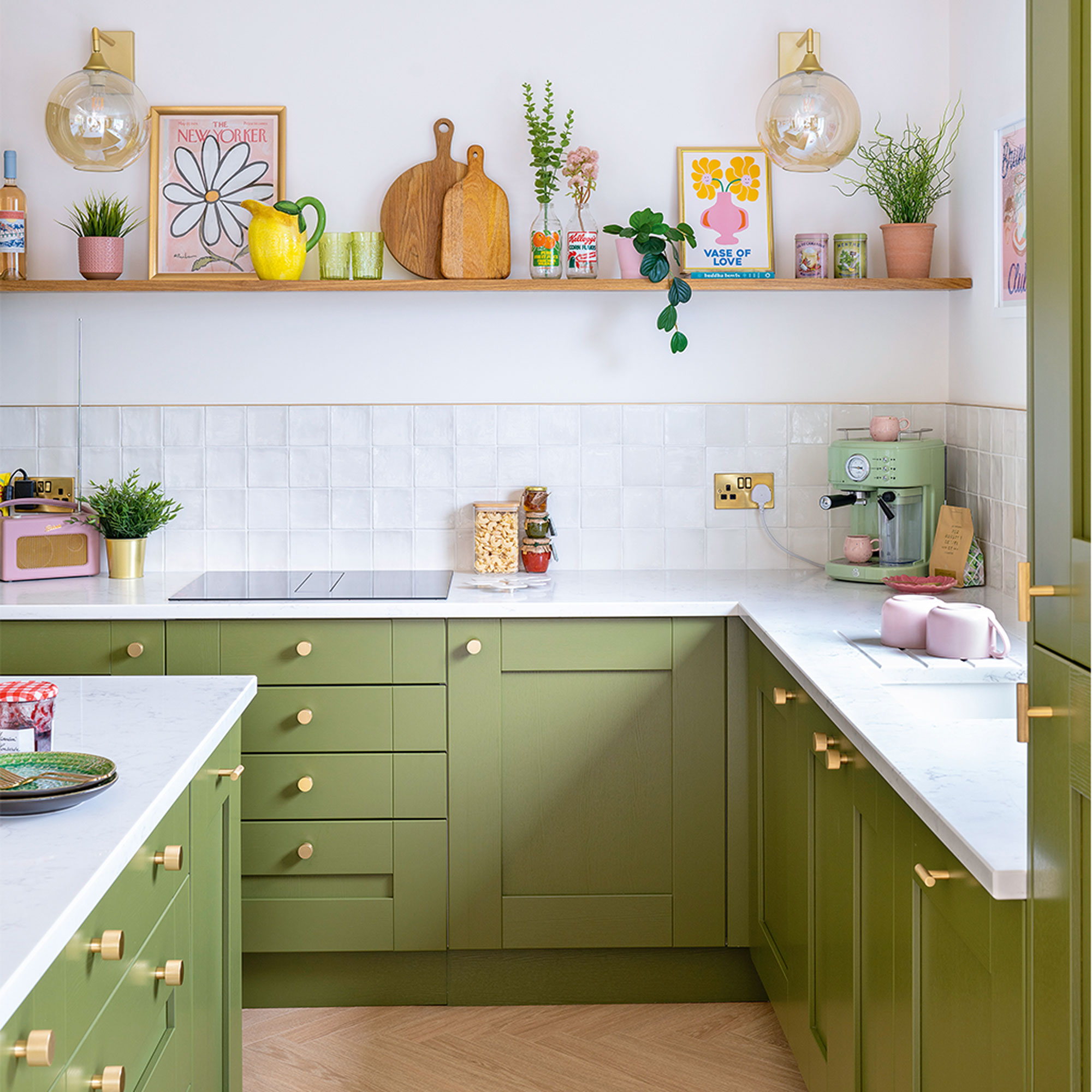 I’ve been an interiors journalist for going on 7 years, and in that time, I’ve seen some incredible painted kitchen cabinet transformations, and I also know the best way to paint kitchen cabinets (in theory). When I bought my first flat earlier this year, I was determined to put what I’d seen into practice and repaint my flat’s grey kitchen cabinets green.