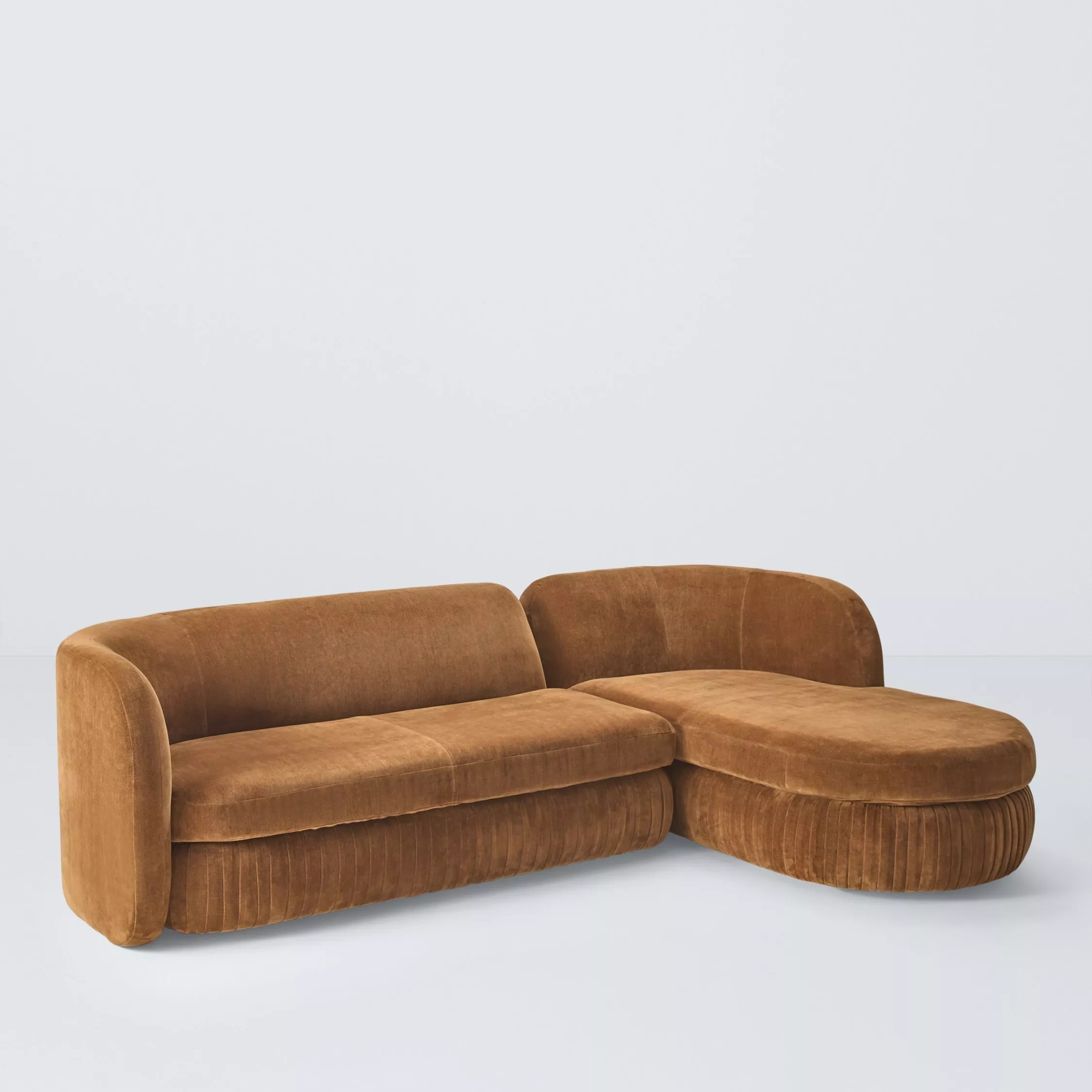 Pleat Large 4 Seater Chaise End Sofa in Soft Chenille Ginger