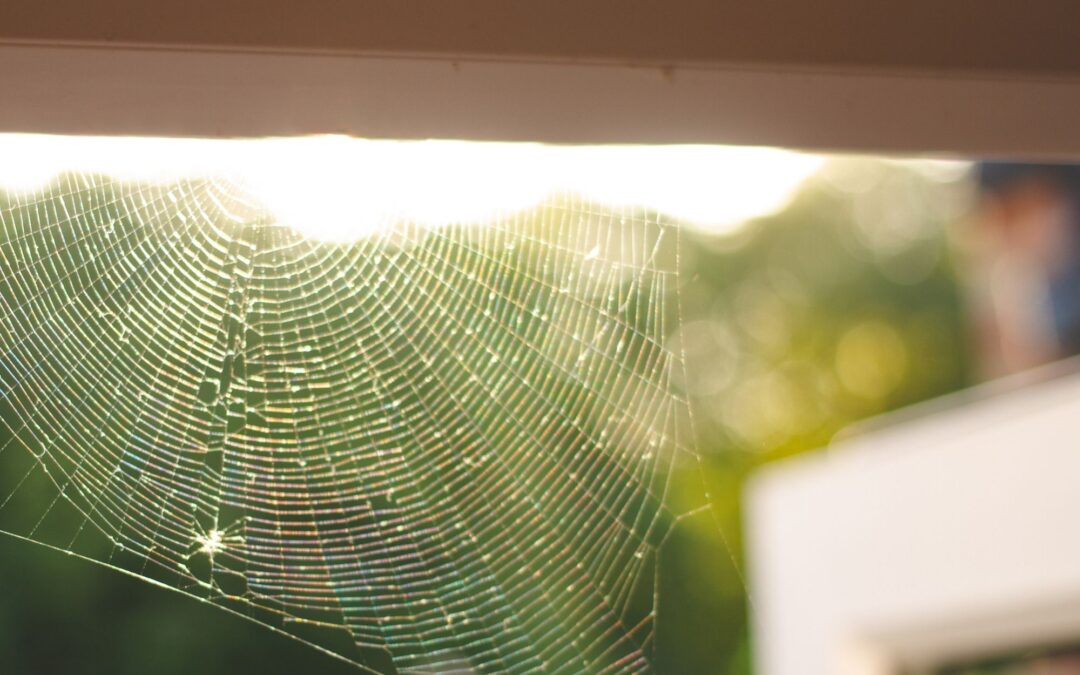 A spider web in a doorway of a modern house