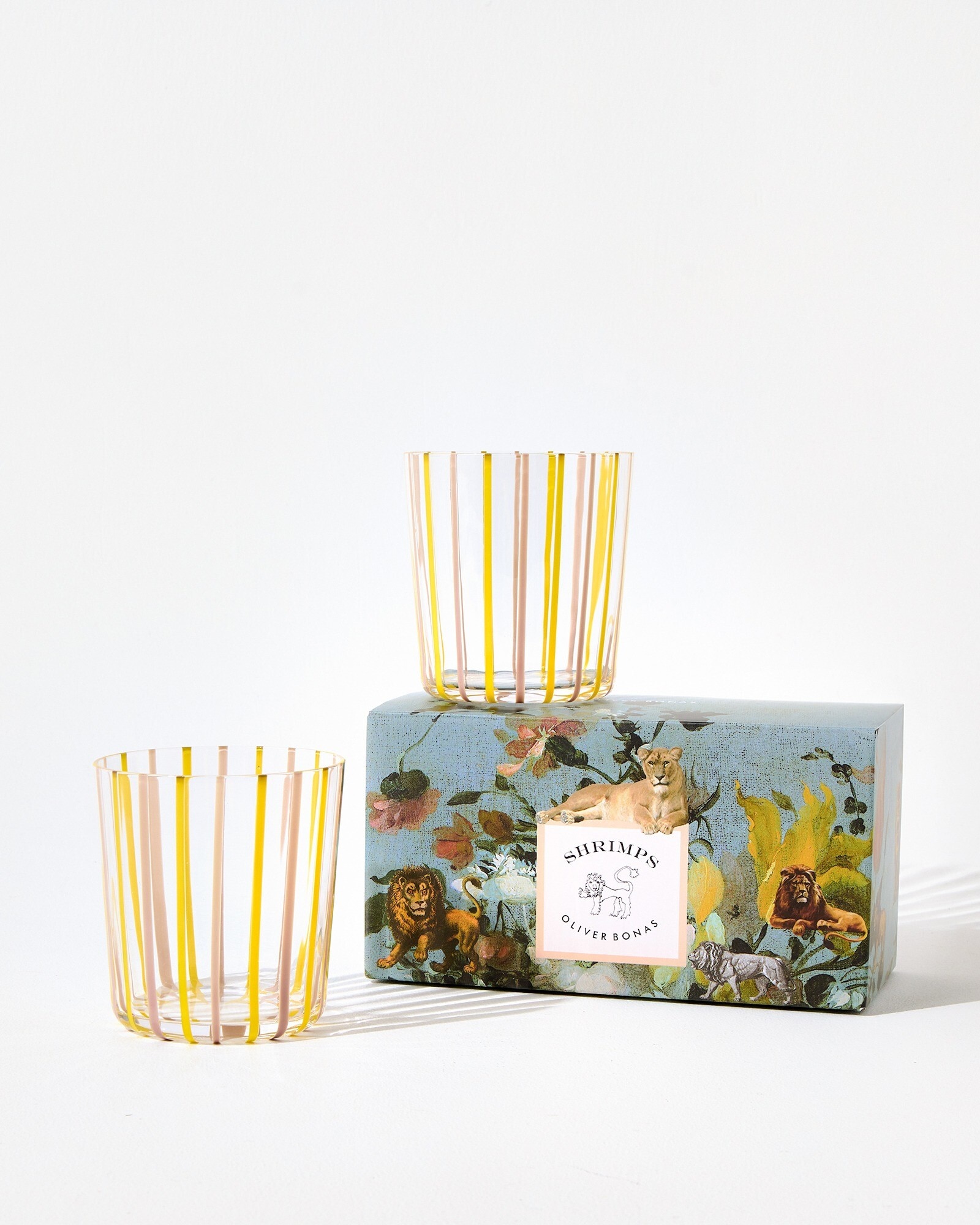 The carafe and water glasses with the colourful stripes are such a fun addition to your everyday tableware, too. Add the carafe to your bedside table for a bright and fun touch to everyday life.