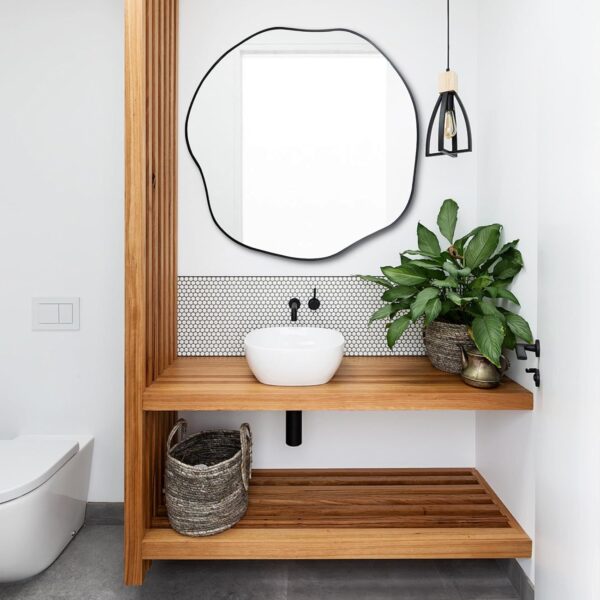 Mid-century modern lovers, this one’s for you. The black wood frame grounds the mirror’s freeform shape, making it a statement piece without clashing with the rest of your decor.
