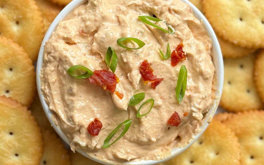 Ina Garten’s sun-dried tomato dip takes just a few minutes to make with the help of a food processor. Blend oil-packed sun-dried tomatoes, softened cream cheese, sour cream, mayonnaise, hot sauce, kosher salt, and black pepper together in a food processor until smooth. Add green onions and pulse a few times to combine, then transfer to a serving dish. Serve with crackers or vegetables for dipping.
