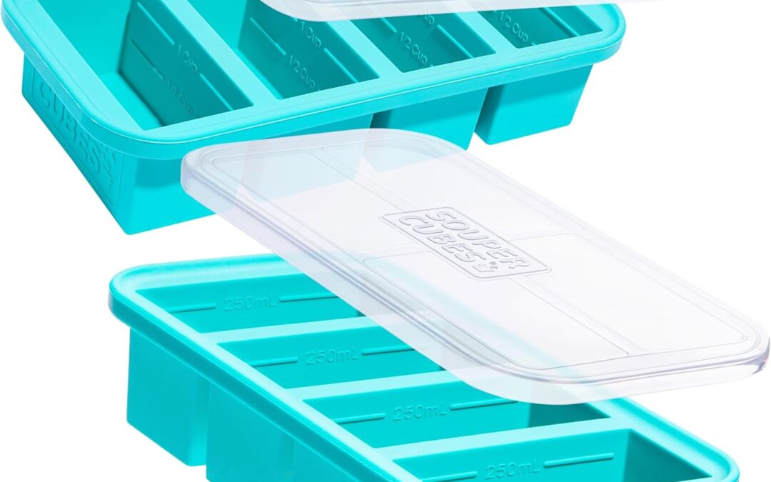 Souper Cubes are made from food-safe silicone that is both oven and freezer-safe. The trays are flexible but have a steel rim to make transporting contents to the freezer easier.