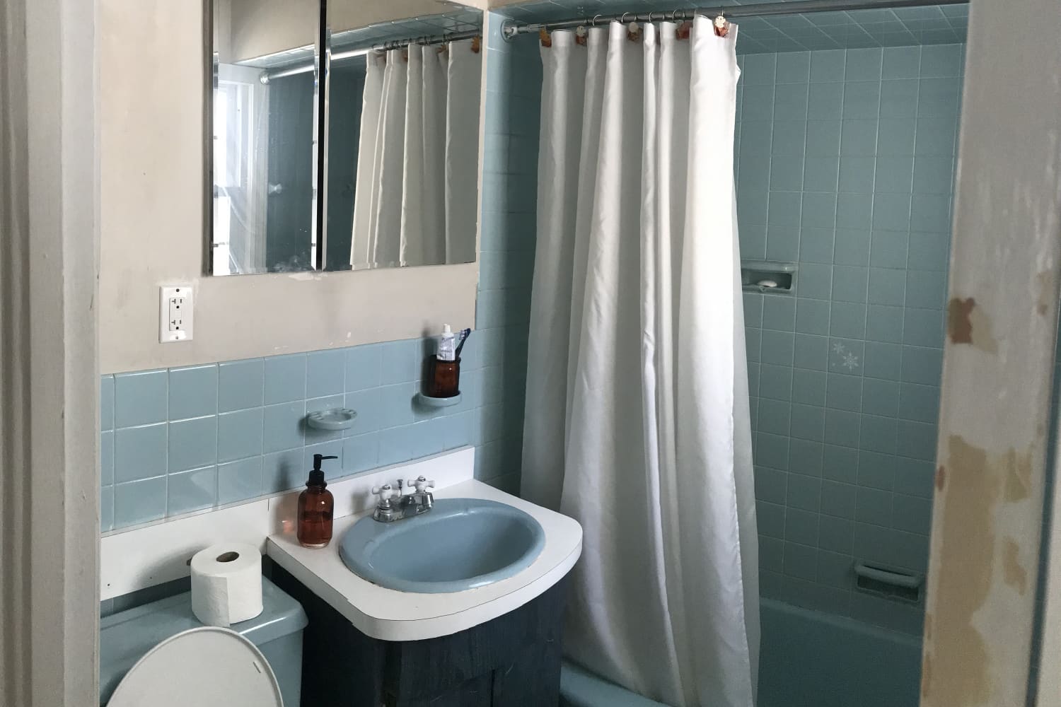 B&A: A $1500 Redo Gives This Boring Gray Powder Room Some Luxe Hotel Vibes