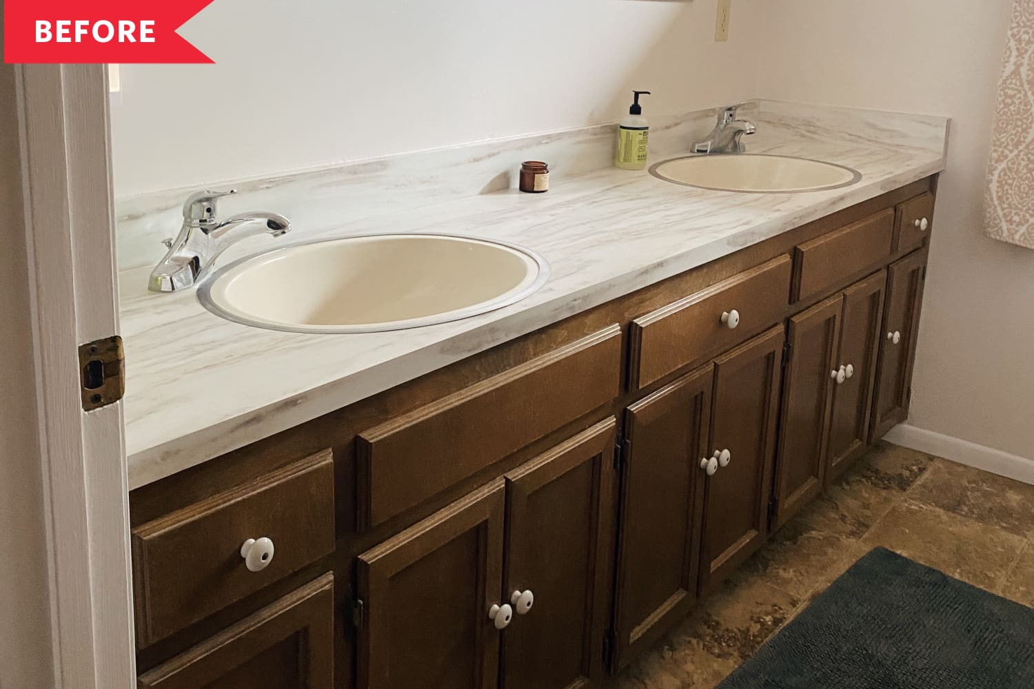 Before and After: A Blah Beige Bathroom Gets a Luxe (But Still Neutral) Redo
