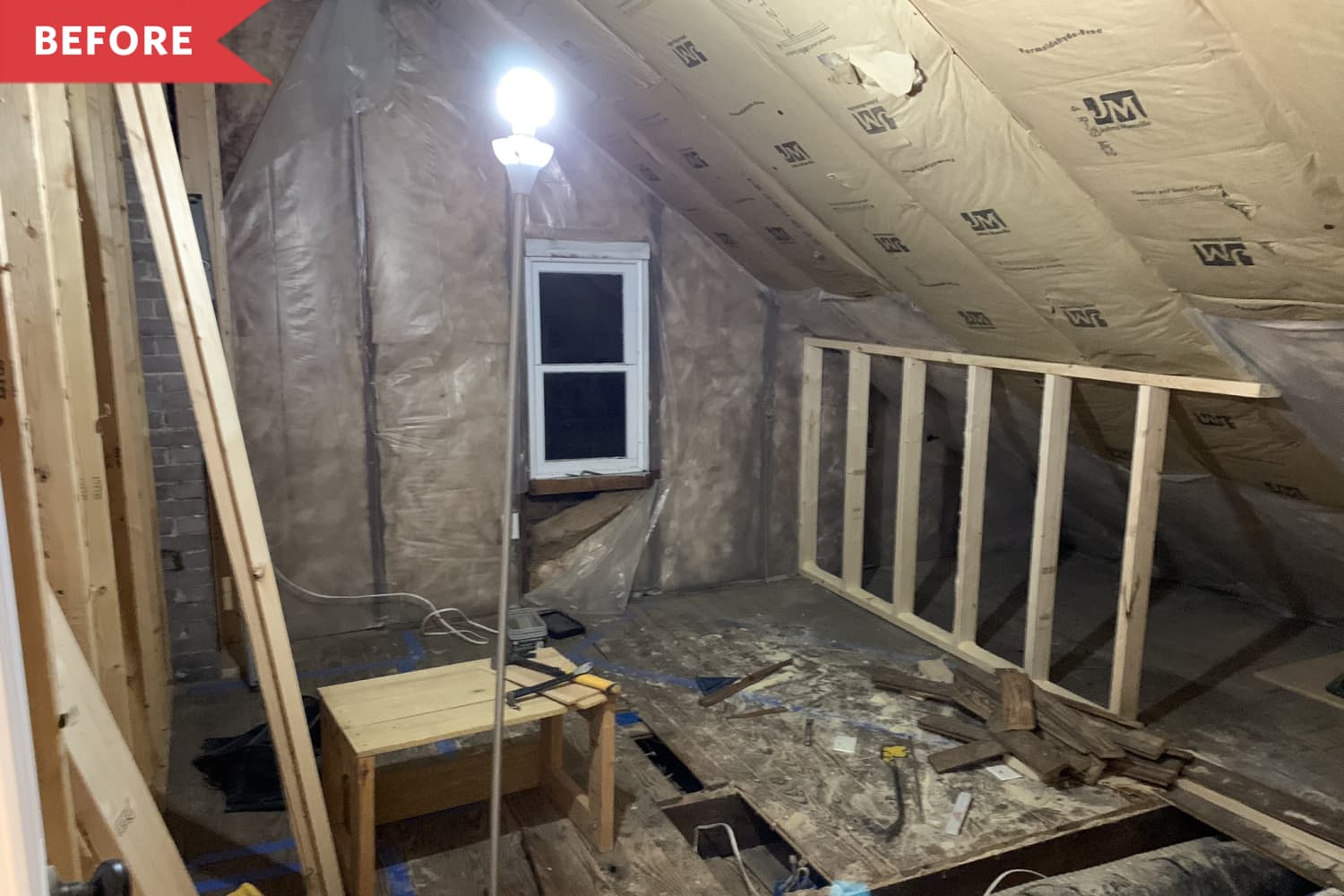 B&A: A Dreary Attic Turned Luxe Bathroom Makes Smart Use of Space