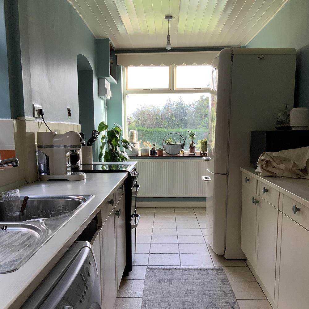 DIYer gives an old-fashioned kitchen a dramatic makeover with dusky pink and black paint