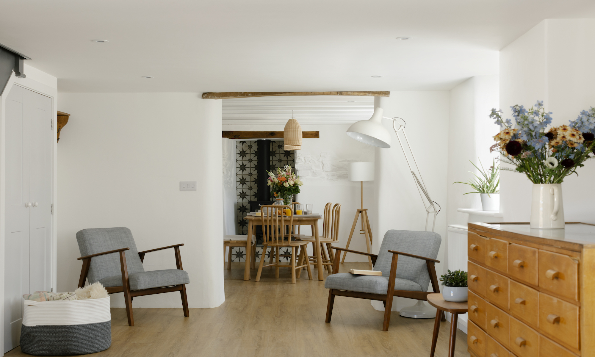 A neutral colour palette and well-loved furniture gives this coastal cottage a relaxed holiday feel